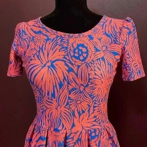 LuLaRoe XS Coral Short Sleeve Stretch Textured Skater Dress