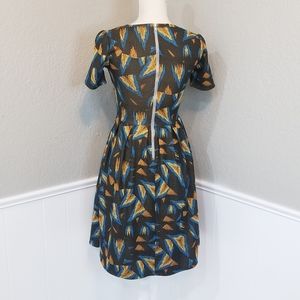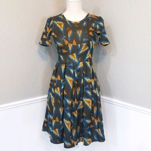 LuLaRoe XS Fit & Flare Brown Blue Yellow Dress with Pockets