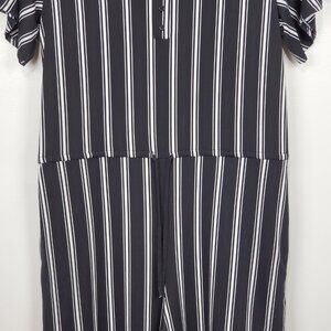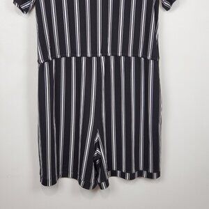 LuLaRoe Xanthe Romper Black White Striped Short Sleeve Pockets Size XL (16-18)