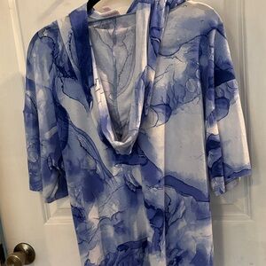 LuLaRoe blue ink short sleeve hoodie- over sized