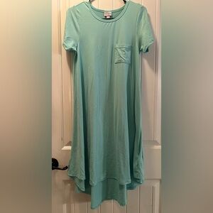 LuLaRoe dress and tunic set in mint green and blush pink. Soft, lightweight knit. Simple crew neck styling. Easy, casual layering pieces.