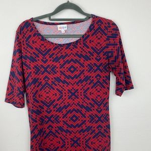 LuLaRoe dress size S color red & blue straight dress with short sleeves, round neck line.