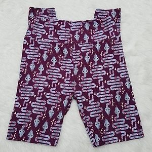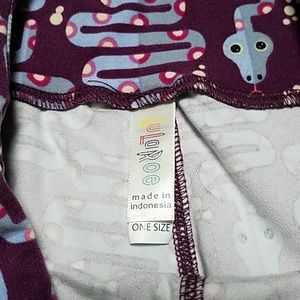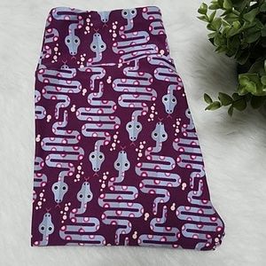 Purple background, gray, light blue and pink snakes, OS, LuLaRoe leggings in good used condition.