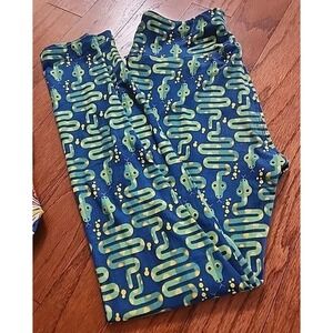 LuLaRoe leggings Lot of 2 Snake Blue Green And Floral Yellow One Size OS