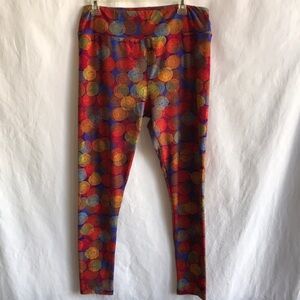 LuLaRoe leggings in pretty multicolored circle print, T&C (tall and curvy). Buttery soft! Great for lounging or wearing with long sweaters or tunics.