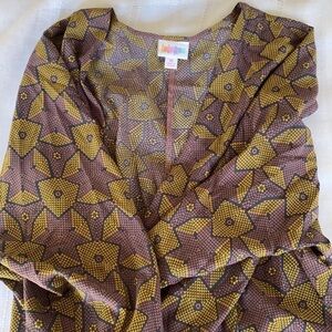 LuLaRoe patterned purple and olive duster.