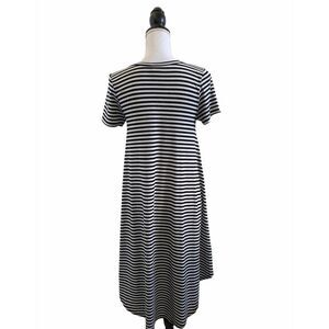 LuLaRoe Carly Dress Black & White Multi Stripe Print Women’s Extra Extra Small