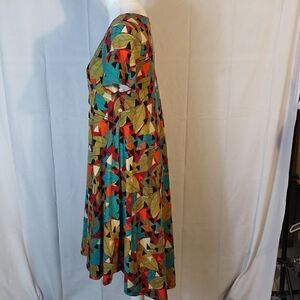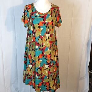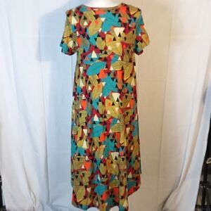 This very colorful short sleeve LuLaRoe "Carly" midi dress is a size XS with a pit to pit measuring 18" and a length of 39". In excellent condition. All offers are welcome.