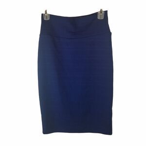 Good condition. Size S. Dark blue LuLaRoe knit skirt. Approximate measurements are waist 14". Wide waist band, 4". Length is approximately 24".