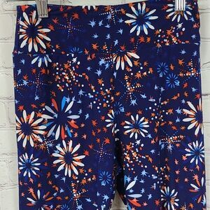 LuLaRoe Fireworks One Size Soft Legging Patriotic USA Red White Blue July 4th