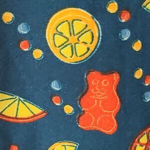 Design: Gummy bears, citrus, lemon, orange printed allover