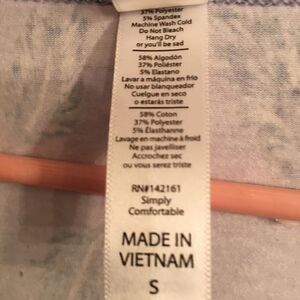New with tags S fits 5/6 stretch Pit 17.5, length 28 Flare out round bottom Lavender with feather print