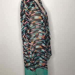 LuLaRoe Monroe. Perfect to use as a swimsuit or beach cover up! With a black, green, and pink color pattern it’ll match a number of colors!