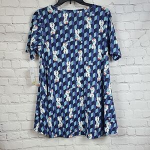 NWT LuLaRoe OLAF Print Perfect T Shirt Disney Frozen Swing Tee Blue Knit Top S