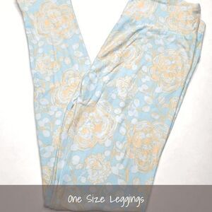 LuLaRoe OS Leggings Floral Light Blue NEW
