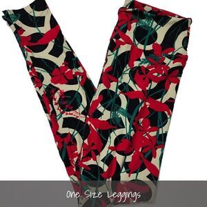LuLaRoe OS Leggings Floral Red Green Black NEW
