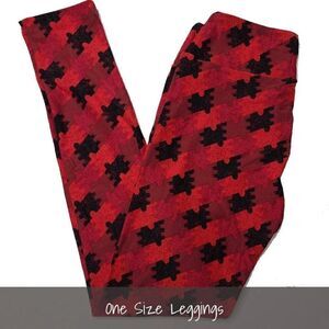 LuLaRoe OS Leggings Puzzle Pieces Red Black NEW