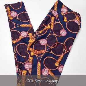 LuLaRoe OS Leggings Tennis Balls Racquets Navy Blue NEW