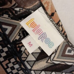 This earthtone abstract 3/4 length sleeve open front LuLaRoe duster is a size Medium with a pit to pit measuring 24" and a length of 42". In excellent condition. All offers are welcome.