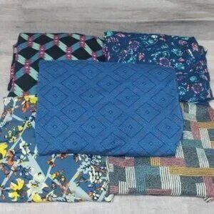 This is a very gently worn lot of 5 LuLaRoe’s Perfect T shirts. They have a fun swing shape, complimented by flirty side slits and a flattering half-sleeve. Simple, comfortable, and versatile. The patterns are fun, the colors are vibrant and the material is buttery soft. (The blue shirt on top is NWT!)