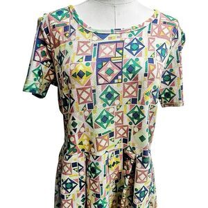 LuLaRoe Plud Size Amelia Yellow Abstract Fit and Flare Dress Size 2X