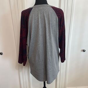 LuLaRoe Randy Gray and Red Raglan 3/4 Sleeve Tee Plus Size 3XL
