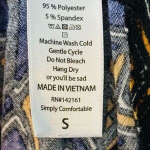 LuLaRoe S Carly Swing Dress Navy & yellow Gold Geometric Print with Breast Pocket.