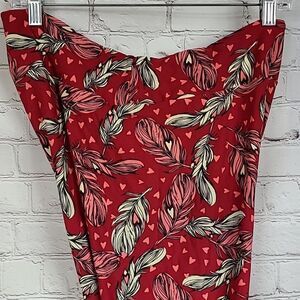 LuLaRoe TC (12-22) Red Feathers Butter Soft Legging Heart Love Plus Size Stretch