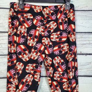 LuLaRoe TC Tall & Curvy (12-18) Leggings USA Skull Flag Print Red White Blue Pat