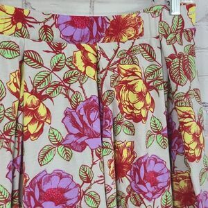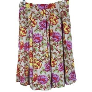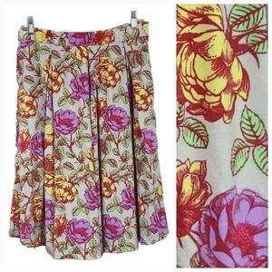 LuLaRoe Retro Tan Floral Madison Box Pleated A-line Skirt w/ Pockets L 14/16