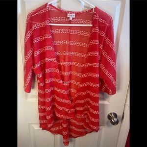 LuLaRoe red and white semi sheer open front cardigan. Sz S. Great Condition