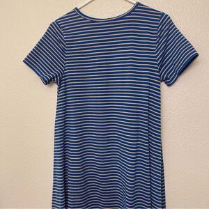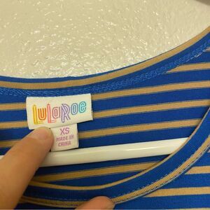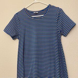 LuLaRoe t shirt dress stretch blue stripe crew neck hi low modest XS