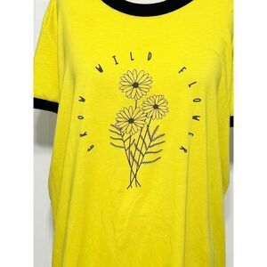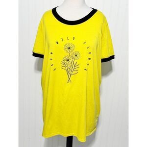 LuLaroe Liv Wildflower Contrast "Grow Wild Flower" Graphic T-Shirt Yellow 2XL