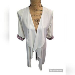 LuLaroe Sheer Kimono Cardigan w Embriodered Cuffs Sz S