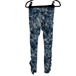 LuLeLemon TieDye Blue White Pattern Leggings MidRise Ruched Calf Women's Size 4