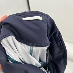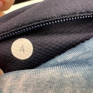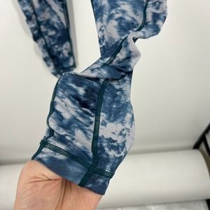 LuLuLemon tie dye leggings in white and blue, mid rise, ruched calf, stretch leggings. Women's size 4.