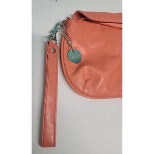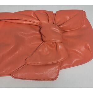 LuLu Soft Orange Peach with bow Silver Toned Hardware Wristlet Clutch Magnetic closure