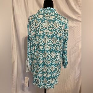 LuLu-B Crinkle 3/4 Sleeve Button Down Blouse Size Medium NWT