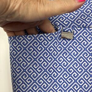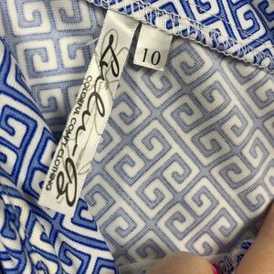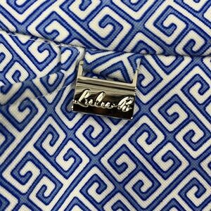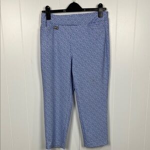 LuLuB Womens Pants 10 Blue White Stretch Waist Geo Pattern Pockets 96% Nylon EUC