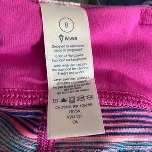 Gently worn girls size 8 Ivivva from LuLuLemon girls activewear leggings. Multicolor striped. Comes from a smoke free home, bundle with other items to save & minimize shipping cost.