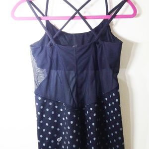 Lululemon Mesh Inset Polka Dot Tank Top Lululemon Cross-Cross strapped tank top. Polka dot pattern with mesh deep v in front and mesh back. Mesh inset.