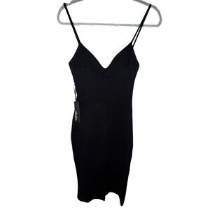 LuLus Black Midi Bodycon Dress Medium Sexy Stretch Classic LBD Basic Eighties