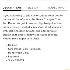 LuLus Game changer coral red dress in pre-owned excellent conditions, total length is 32", see picture for item description.