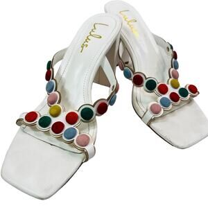 LuLu's Mahly White Multicolor covered buttons High Heel Sandals 7.5
