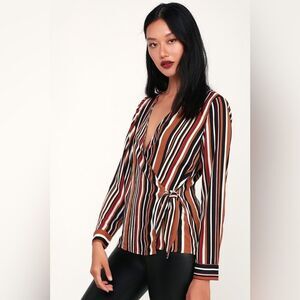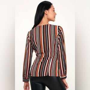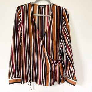 LuLu’s McKenna Brown Multi Striped Long Sleeve Wrap Top size Small