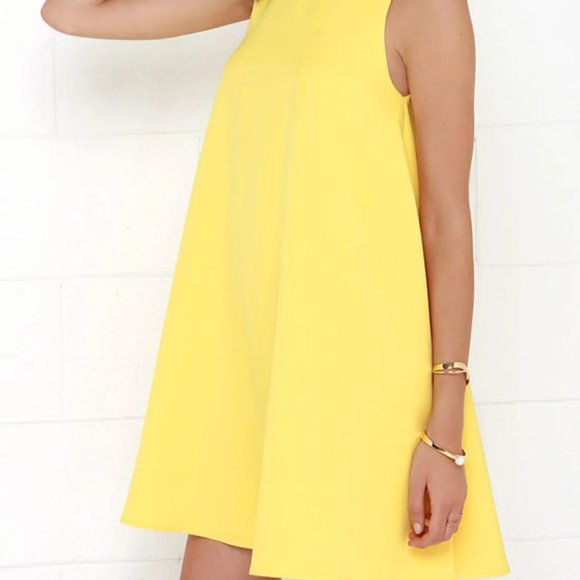 Retro style Mod Maven Swing Dress... sleek woven poly constructs a cuffed mock neckline and a sleeveless wide cut bodice. The flaring swing skirt finishes in a short, flirty hem to show off your stems! Exposed gold zipper. Fully lined. 100% polyester. Machine wash cold or dry clean. This swing dress will look amazing on any body type!