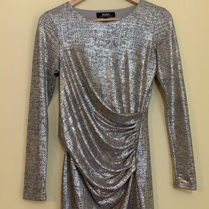 LuLu’s | Money Gold Ruched Bodycon Long Sleeve Lined Shimmer Stretch Dress in size small