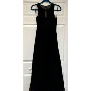 LuLus Prom Dress XXS I’m Flattered Black Embroider Maxi Pleated Skirt Sheer Top Cheap Prom
