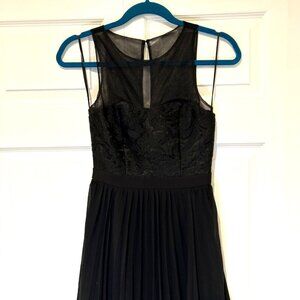LuLus Prom Dress XXS I’m Flattered Black Embroider Maxi Pleated Skirt Sheer Top