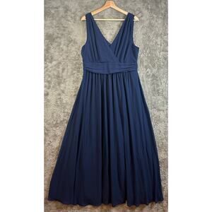 LuLu's Thoughts Of Hue Navy Blue Faux Wrap Side Slit Ruchd Surplice Chiffon Maxi Bridesmaid Dress Gown XL Sleeveless Extra Large